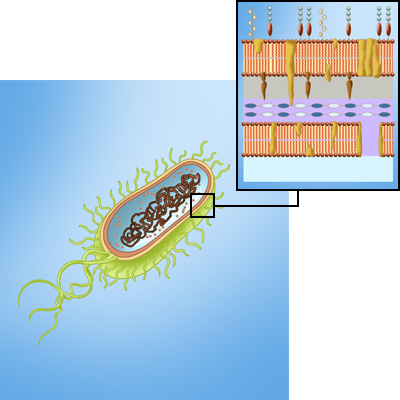 The membrane of the bacteria consists of a phospholipid and lipopolysaccharide bilayer which its basic function is protecting the cell from its surroundings.