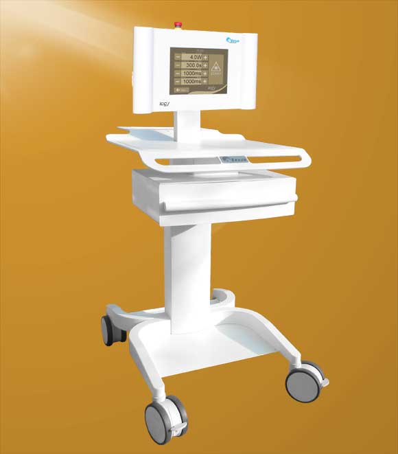 The Iccy 980 was constructed for maximum flexibility to serve the multiple needs that occur in neurosurgical practice. The laser can be equipped with an adjustable stand, a wall or a ceiling mount. Flexible configuration-options ensure a healthy posture of the user, the most important prerequisite for effective and focused work. The 8-lingual Diode Laser can be set up either with an adjustable stand, wall or ceiling mount. He is a true warrant for flexibility and mobility. The cart makes any changes, either room or station, possible: Depending on space demands, a suitable position for the laser can always be found.